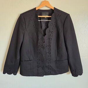 Banana Republic Work Career Office Business Ponte Knit Scalloped Open Front Blazer Jacket Black Size Women's 12