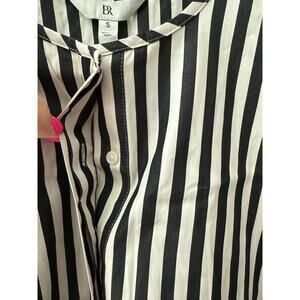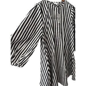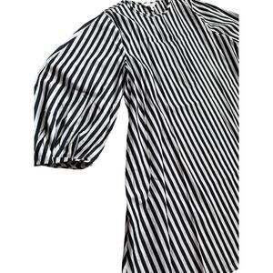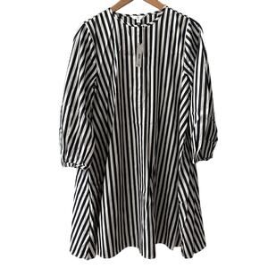 Banana Republic Poplin Lantern Sleeve Mini Swing Dress Black Stripe Size Small