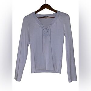 Banana Republic Popover Top Lace Up Front Casual Long Sleeve Women M Cotton