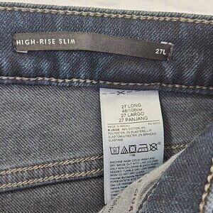These Banana Republic Premium Jeans for women in size 27 Long (28x30) feature a dark wash with a raw hem, giving them a trendy and unique look. Made from a blend of polyester and cotton denim, these leggings are designed for a slim fit and are machine washable for easy care.