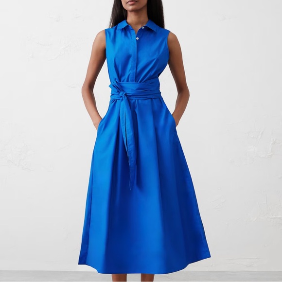 Banana Republic Princess Blue Poplin Cross-Waist Midi Dress