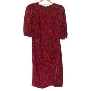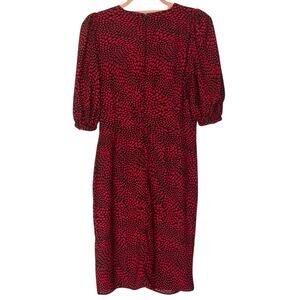 Banana Republic Puff Sleeve Mini Dress Size 6 Red Black Dot Print Sheath Dress