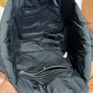 Such a treat. This sporty tote bag is made from puffy nylon with plenty of interior pockets to keep things organized.