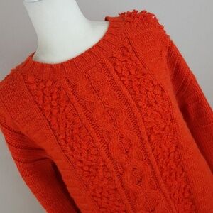Excellent pre owned condition.Banana Republic Pumpkin Orange Cable Knit Alpaca Blend Sweater. Pumpkin color knub and cable knit. Italian yarn blend of alpaca and merino wool. Ribbed collars and cuffs. Long sleeves. Super soft.