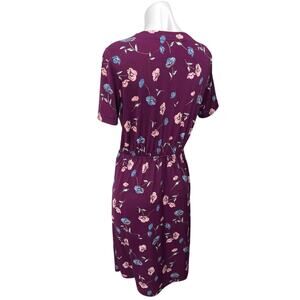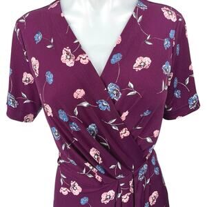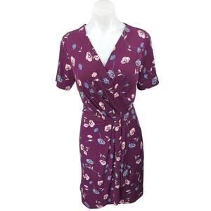 Banana Republic Purple Floral Short Sleeve Pleated Midi Wrap Sheath Dress Size S