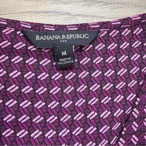 Banana Republic Purple Geometric Blouse Accordion Bell Sleeve V-Neck Womens Sz M