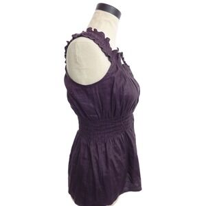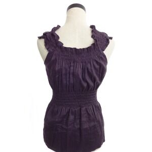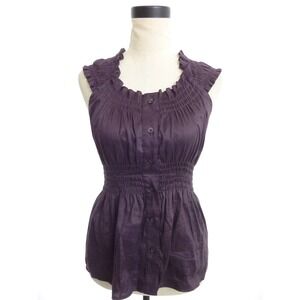 Banana Republic Purple Smocked Button Down Blouse Medium Sleeveless Top