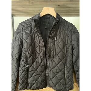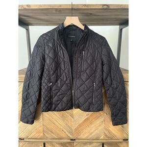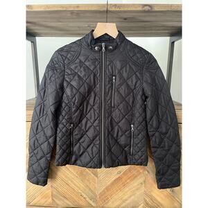 Banana Republic Quilted Cropped Jacket Black Moto Style Size XS
