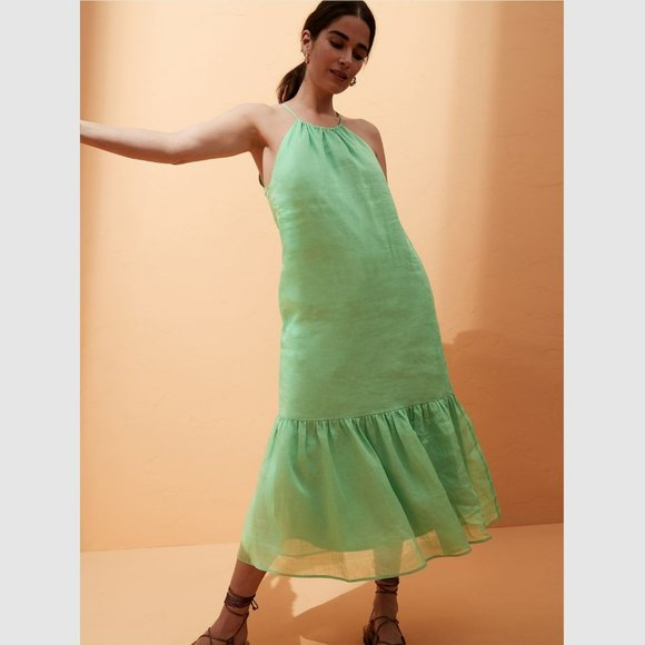 Banana Republic Ramie Halter Midi Dress Green Sz XS