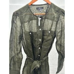 Banana Republic Ramie Shirt Dress Sheer Button Up Long Sleeves Green Small NWT