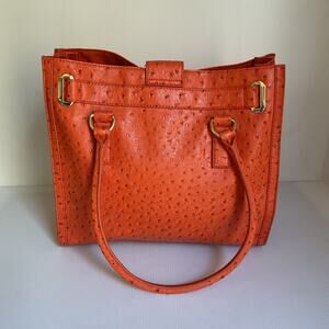 Rare Banana Republic Ostrich Tote Bag Papaya Orange Large Shoulder discontiued,