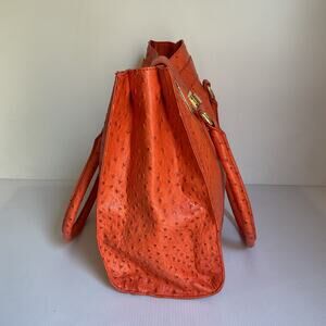 Banana Republic Rare Ostrich Tote Bag Papaya Orange Large Shoulder Purse Y2K