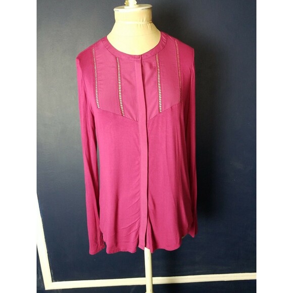 Banana Republic Raspberry Blouse Cutout Front Tunic Shirt Sz Small. A little stretch. Contrasting fabrics. Button-down. Condition is "Pre-owned".