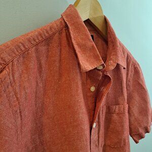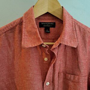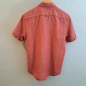 Stylish red button-down shirt. Features a classic collar and front pocket. Perfect for casual wear.