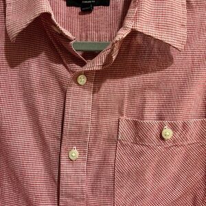 Soft brushed cotton button-down with a mini red check plaid design. Features a front pocket and classic collar. Versatile. Looks great with jeans, khakis, gray or navy pants. Good option for holidays. Excellent condition.