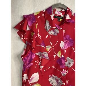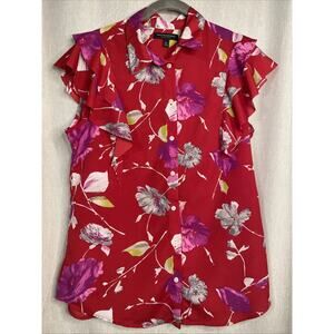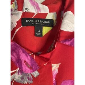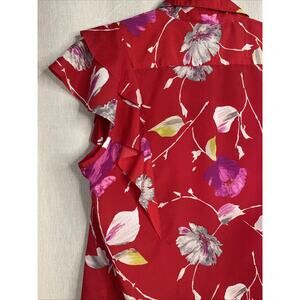 Banana Republic Red Floral Dillon Blouse -Button-up Ruffle Sleeve Feminine Sz M