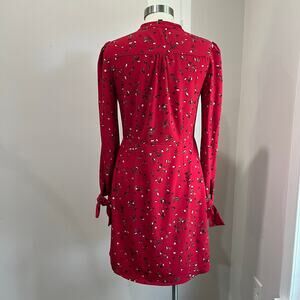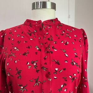 Banana Republic Red Floral Long Sleeve Button Mini Dress Career Party Sz 6