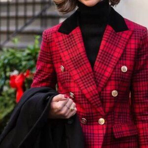 Banana Republic Red Plaid Captains Blazer Size 4