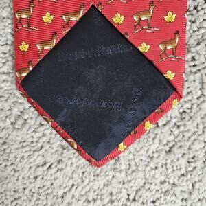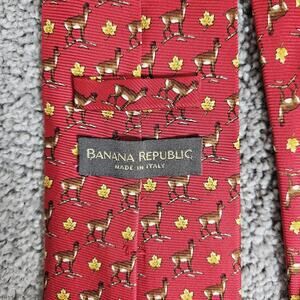 Banana Republic Red Silk Necktie Deer AOP Made In Italy Preppy Maple Leaf