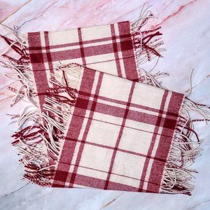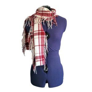 Banana Republic Red and White Plaid Fringe Scarf Wool Angora Blend