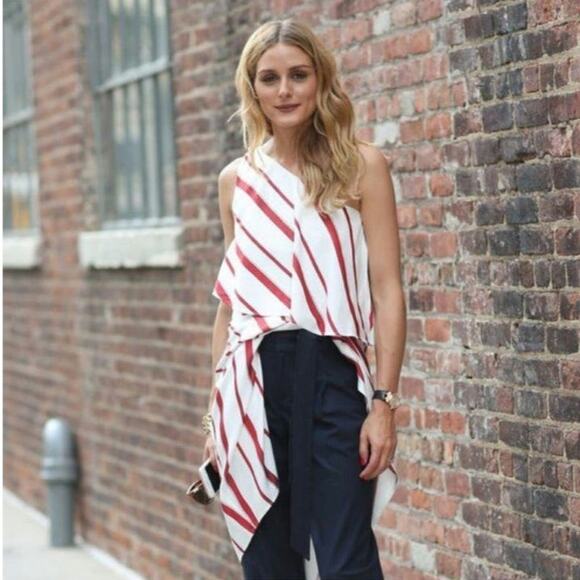 Banana Republic Red And White Stripe Dress One Shoulder Midi Asymmetrical Size 4