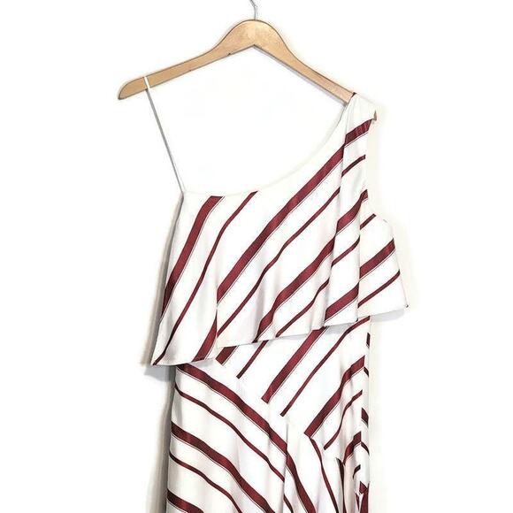 Banana Republic Red and White Stripe Dress One Shoulder Asymmetrical Midi Size 4