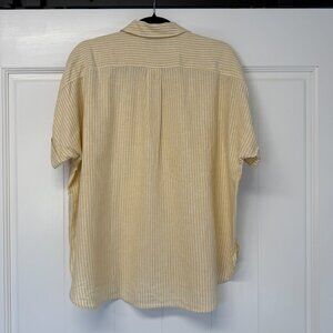 Breezy and effortlessly stylish, this Banana Republic oversized linen blouse is a must-have for warm-weather layering! Featuring a classic tan and white stripe pattern, this relaxed-fit button-up is perfect for a casual, laid-back look or dressed up for effortless sophistication.
