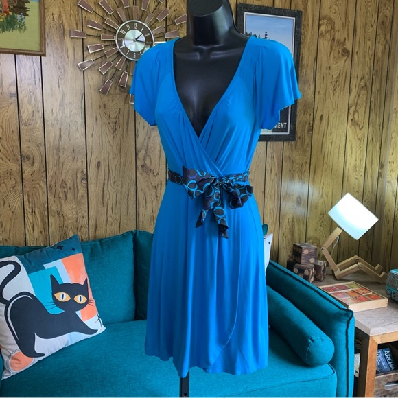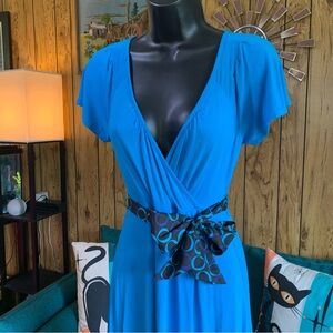 Beautiful aqua blue dress from Banana Republic. Petite size for a perfect fit. Lovely flutter sleeves. Plunging V-neckline. Contrasting tie belt at waist. In great condition.