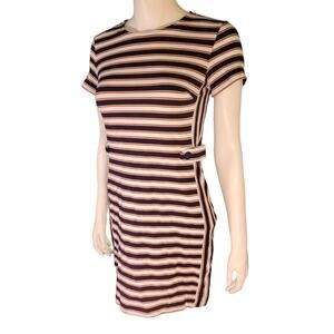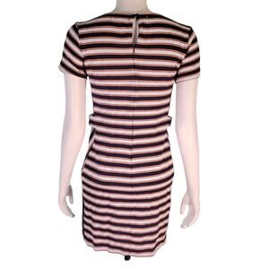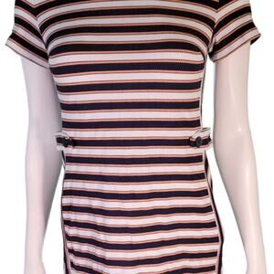 Banana Republic Ribbed Striped Mini Dress Sz 4P Navy Rust White Textured Bodycon