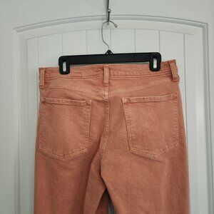 Infused with the gentle hue of rose quartz, these high-rise slim jeans from Banana Republic offer a harmonious blend of comfort and style. With widervlegs and a high rise they feature a timeless silhouette that flatters the figure, making them a versatile addition to any wardrobe. The soothing color adds a touch of elegance, while the soft fabric ensures a cozy fit. Whether paired with a casual tee or a chic blouse, these jeans exude sophistication and charm, making them an essential piece for those who appreciate understated beauty in their attire.