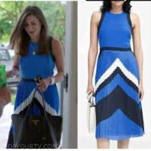 Banana Republic Royal Blue Black Chevron Accordion Pleated MiDi Dress