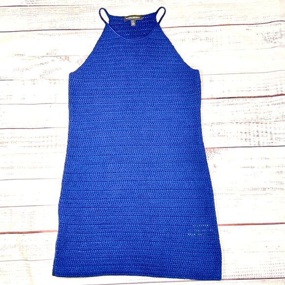 Banana Republic Royal Blue Crochet Open Knit Halter Mini Dress Small Sleeveless