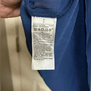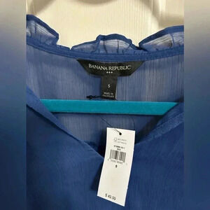 This is a brand new Banana Republic women's blouse in size small. It is a royal blue solid color with a sheer fabric and a v-neckline. The blouse has short flutter sleeves and a tie accent at the neck.