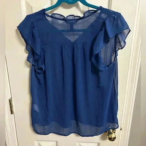 Banana Republic Royal Blue Flutter Sleeve Sheer Top NWT Small