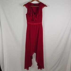 Banana Republic Ruffle Maxi Dress Firebrick Red Georgette Size 0 V-Neck