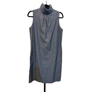 Banana Republic Ruffle Neck Sleeveless Shift Dress Blue in a size 4