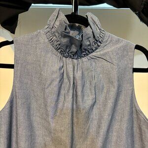 Banana Republic Ruffle Neck Sleeveless Shift Dress Blue