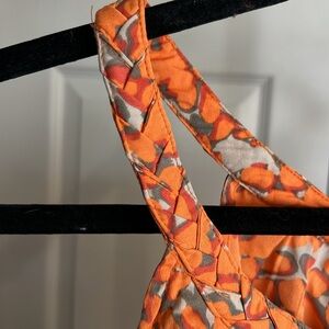 Banana Republic Ruffle Tank - Orange Print Braided Straps - Size Large