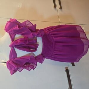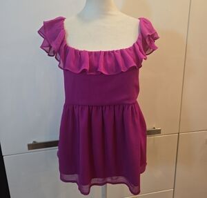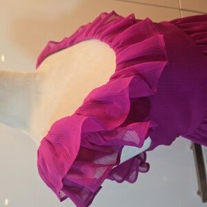 Banana Republic Ruffled Empire Waist Guazy Fushia Pink Blouse Womens Size Medium