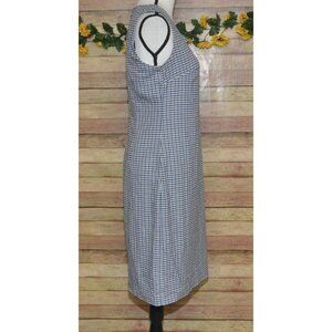 Elevate your work wardrobe with this Banana Republic sheath dress. Featuring a ruffled shoulder and a classic blue & brown plaid design, this knee-length dress is perfect for office or academia settings. The back zip ensures a snug fit, while the lining adds comfort.