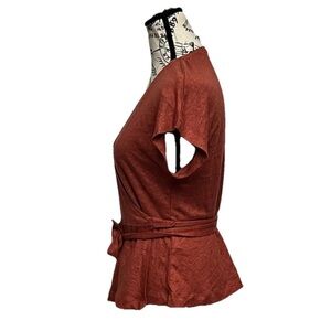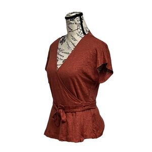 Banana Republic Rust Vneck Cropped Wrap Blouse Linen Beach Boho Peasent Prep SP