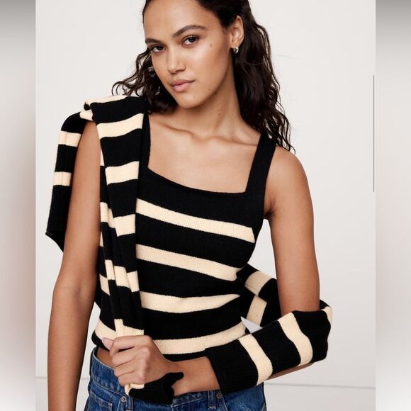 Banana Republic SET Square Neck Sweater Tank + Relaxed Cashmere Cardigan Striped