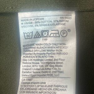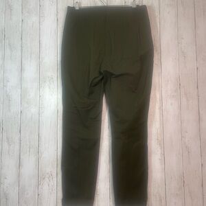 Olive green,High rise,Fitted from hip to hem,Bi-Stretch fabric engineered with high stretch and recovery for a smooth, supportive fit that won't lose its shape,Machine wash and hang to dry,Elastic waistband with side zip and button,ankle zippers, colors may vary due to lighting, NWT, has small snag on leg see picture, 12