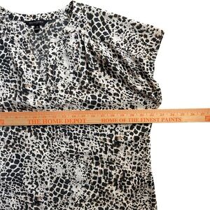 Elevate your wardrobe with this stylish Banana Republic short sleeve dolman blouse in a chic animal spot print. Featuring neutral tones of black, tan, and cream, this lightweight top is perfect for work, casual outings, or layering under a blazer. Sott and breathable 100% polyester with a flattering relaxed fit.