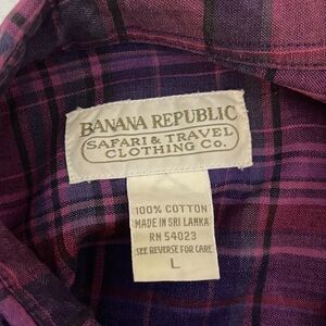 Banana Republic Safari Trading Co. Vintage Plaid Button Down Top L