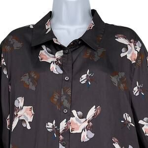 Banana Republic Satin Floral Blouse in Gray and Pink Size XL