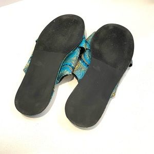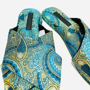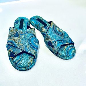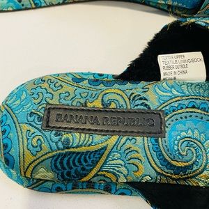Banana Republic Satin Paisley Bedroom Slippers. Size Medium. 10.5” long. Preowned & like new. Teal & gold color way.