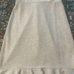 This semi casual dress from Banana Republic features a sleeveless halter neckline and a playful ruffled hem. Crafted in a light gray hue, it offers a breezy and stylish look perfect for relaxed outings. Has crisscross straps in the back as well as a back zipper and slip lining for comfort.