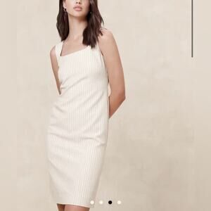 Banana Republic Sculpted Sheath Dress White Stripe Square neckline