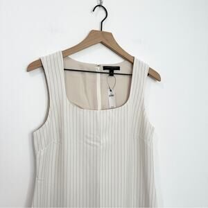 Banana Republic Sculpted Sheath Dress White Stripe Square neckline 10 Neutral